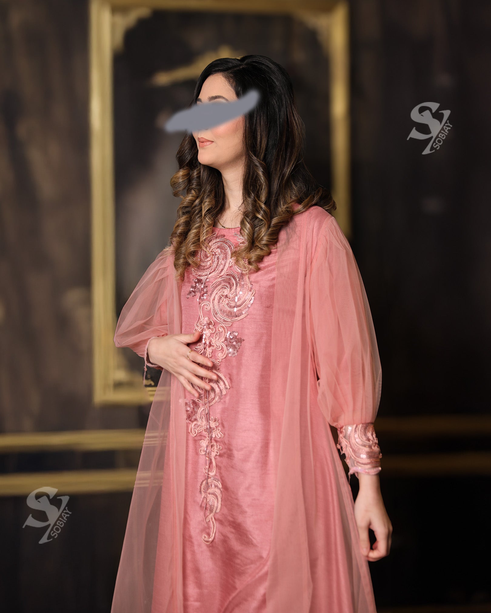 Pink Arab Princess Abaya – Double Layered with Hand Embellishments & Puffy Sleeves SY14