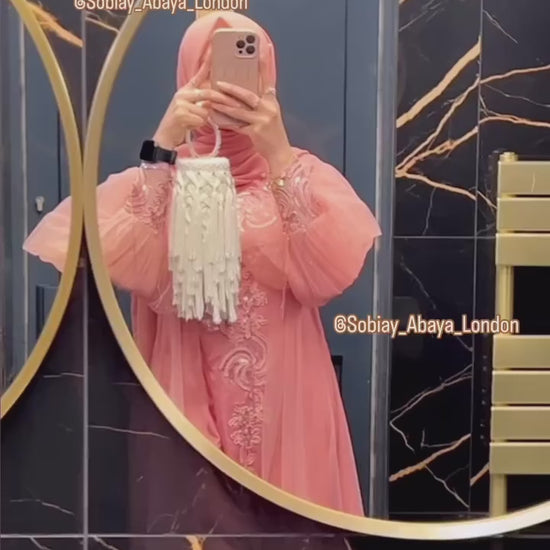 Pink Arab Princess Abaya – Double Layered with Hand Embellishments & Puffy Sleeves: